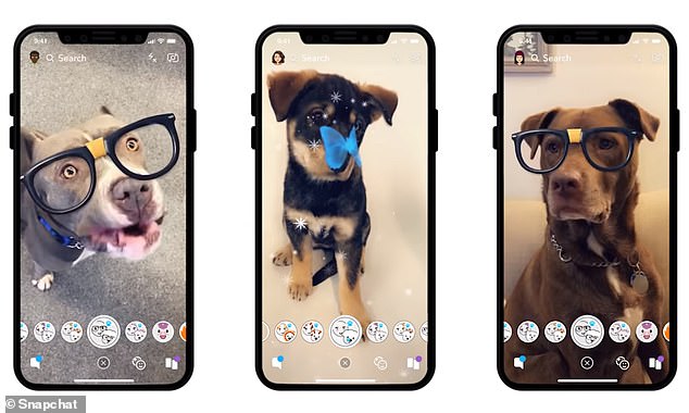 The system detects facial features to add fun or informative 3D elements such as puppy ears or air-quality data.