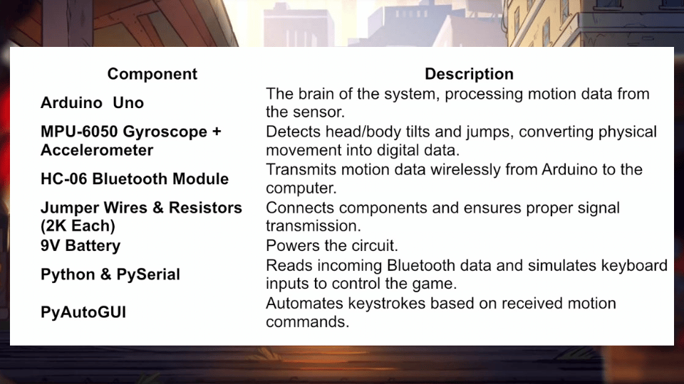 This shift not only addresses the latency problem but also opens up opportunities for more fun and engaging gameplay. While our initial ultrasonic setup provided valuable insights, the new wireless, gyro-based design marks a significant step toward our goal of a fully finished and innovative motion controller. By combining sensor data from the Arduino with Bluetooth communication and a Python-driven client, we’re able to transform physical movements into digital commands for gaming.