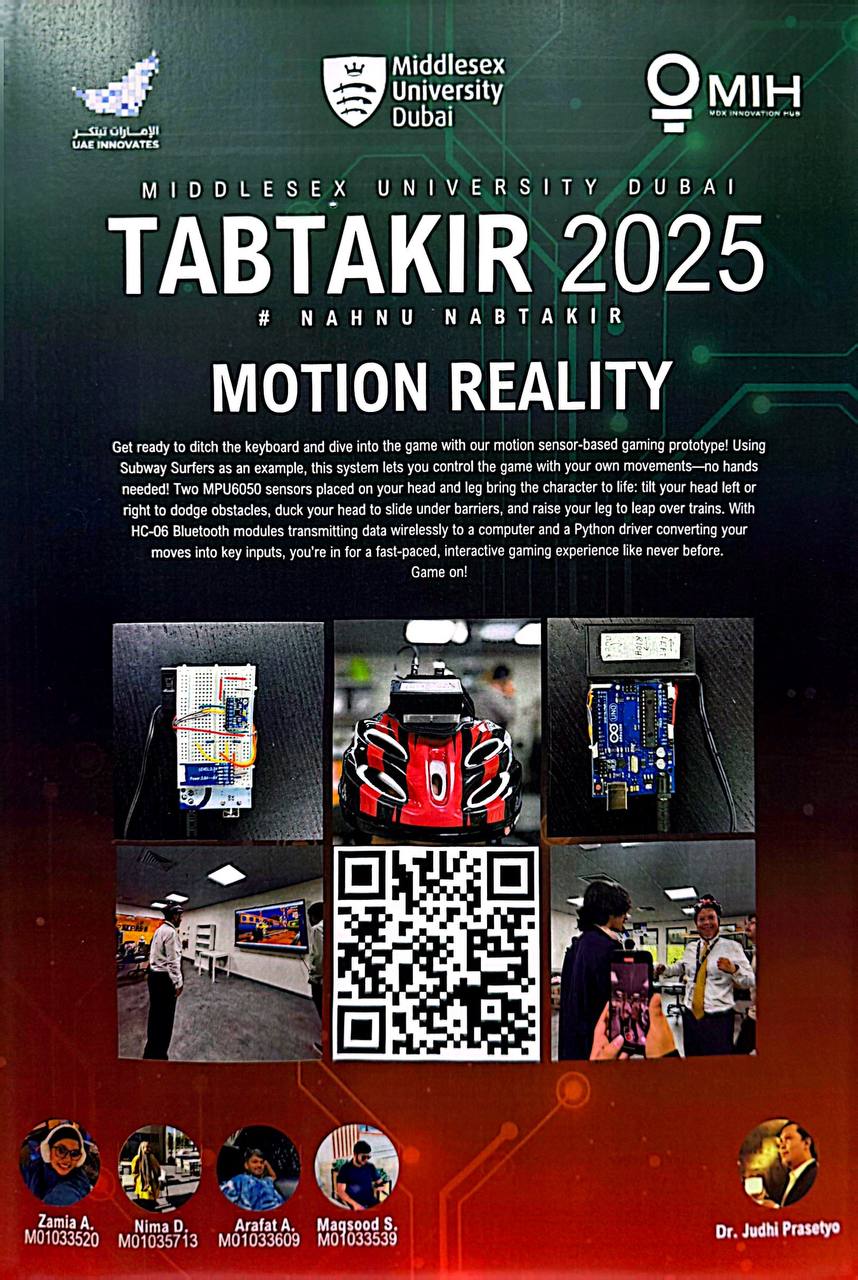 We recently took our Motion Reality project to TABTAKIR 2025, where we had the opportunity to showcase our innovative DIY motion controller in front of professors, faculties, and students. The energy in the room was contagious, and everyone was excited to see our project in action.